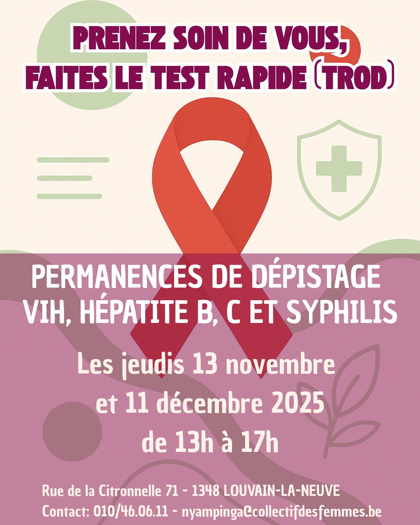 🩸 Ne manquez pas notre permanence de dépistage (test rapide) du VIH, de la syphilis et des hépatites B et C à Louvain-la-Neuve, demain !